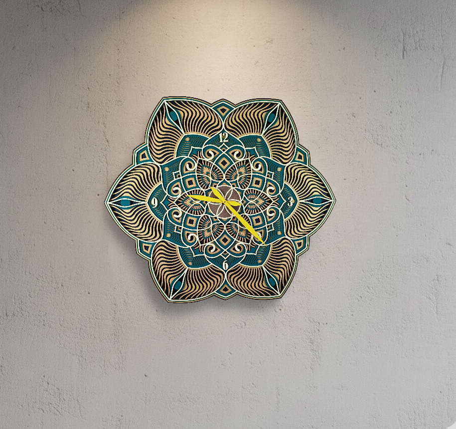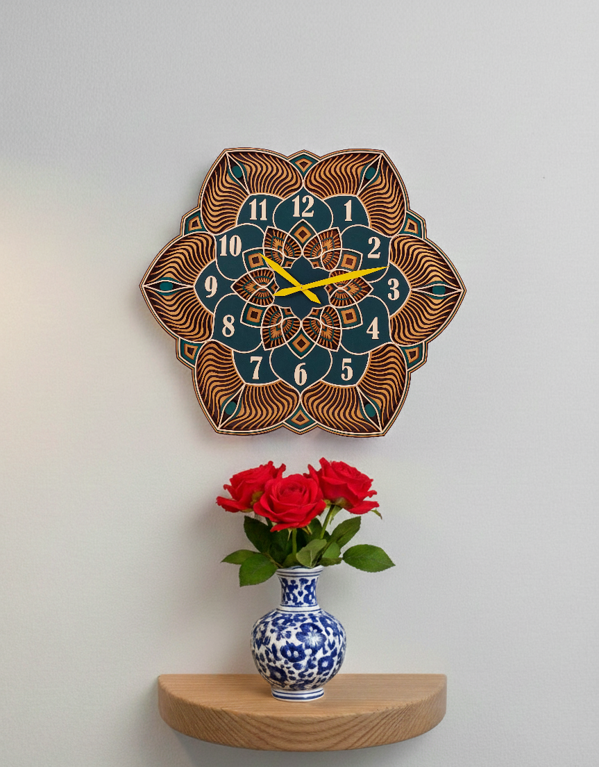 ساعت دیواری چوبی مدرن طرح ماندالا کد ۲۰۱۱