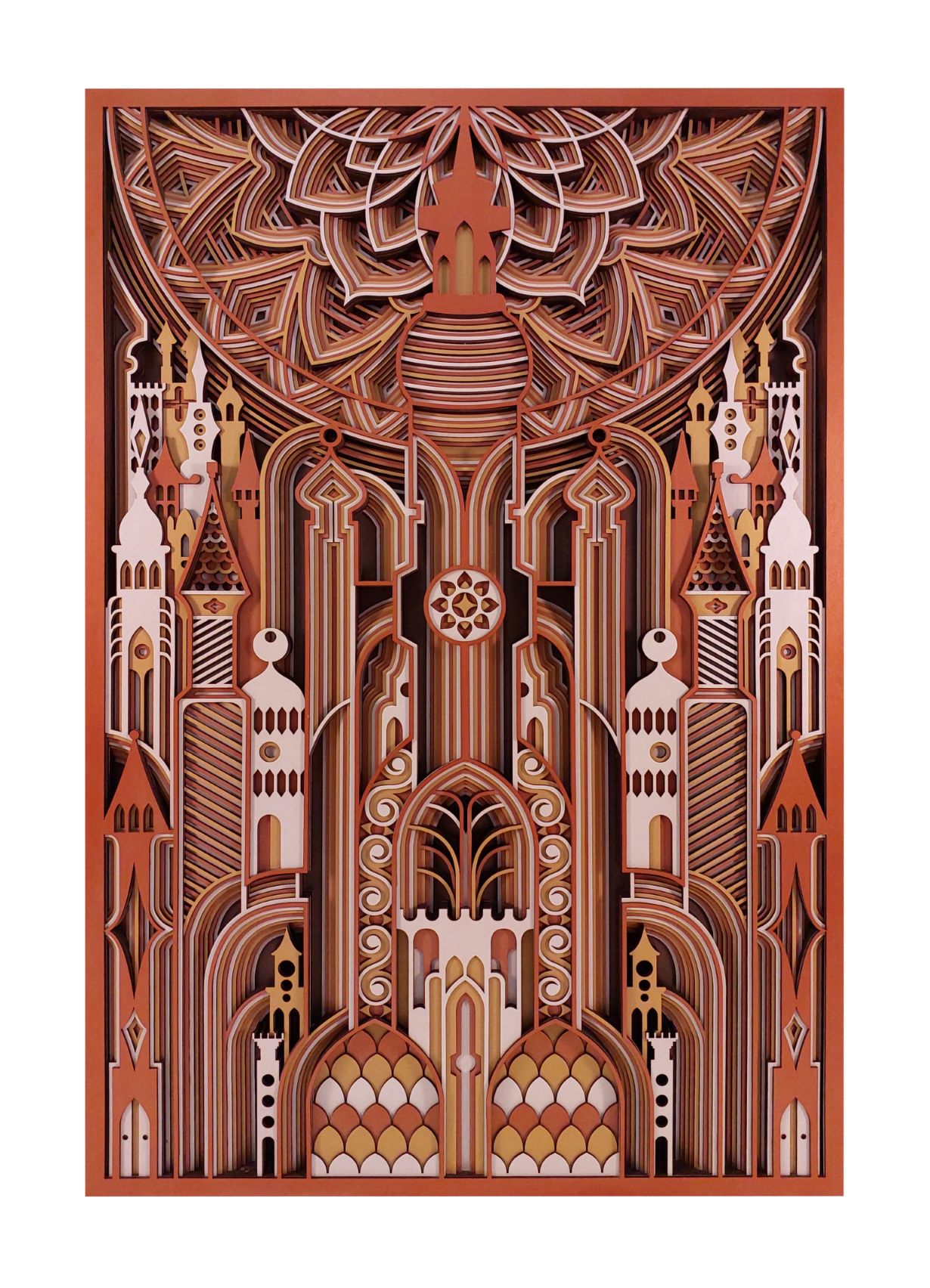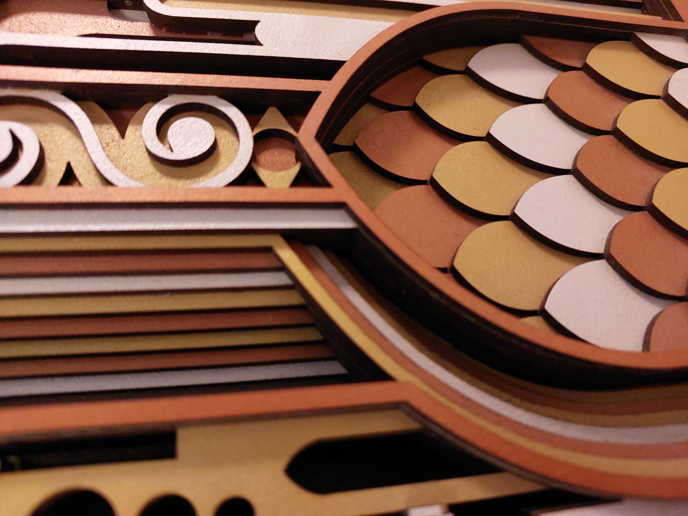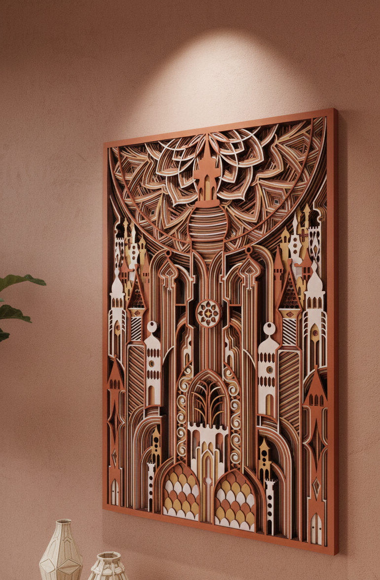 تابلو دکوراتیو کد ۱۰۱۲ یک اثر هنری چشمنواز است که با استفاده از تکنیک لایهلایه و به سبک معروف تابلوهای گابریلی ساخته شده است. این تابلو از ۱۱ لایه چوب مجزا تشکیل شده که عمق و بُعد بصری ویژهای به آن میبخشد. ترکیب رنگهای لوکس و جذاب برنز، طلایی و سفید صدفی جلوهای شیک و مدرن به آن داده است. این تابلو با ابعاد ۸۵ سانتیمتر طول و ۶۰ سانتیمتر عرض، و وزن ۷ کیلو و 850 گرم، یک قطعه دکوراتیو حجیم و تأثیرگذار برای دیوارهای بزرگ محسوب میشود.