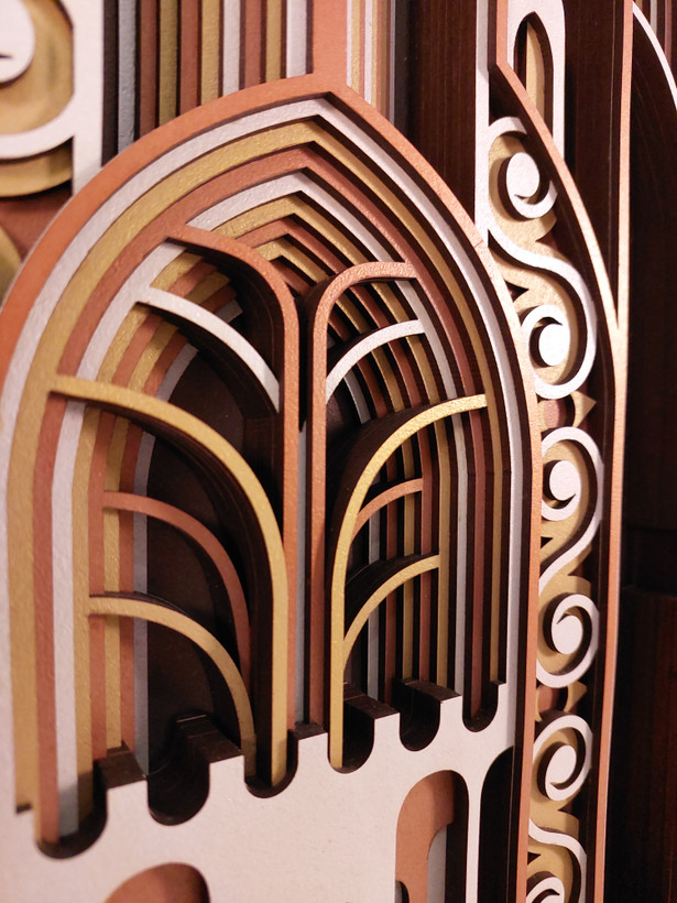 تابلو دکوراتیو کد ۱۰۱۲ یک اثر هنری چشمنواز است که با استفاده از تکنیک لایهلایه و به سبک معروف تابلوهای گابریلی ساخته شده است. این تابلو از ۱۱ لایه چوب مجزا تشکیل شده که عمق و بُعد بصری ویژهای به آن میبخشد. ترکیب رنگهای لوکس و جذاب برنز، طلایی و سفید صدفی جلوهای شیک و مدرن به آن داده است. این تابلو با ابعاد ۸۵ سانتیمتر طول و ۶۰ سانتیمتر عرض، و وزن ۷ کیلو و ۳۵۰ گرم، یک قطعه دکوراتیو حجیم و تأثیرگذار برای دیوارهای بزرگ محسوب میشود.