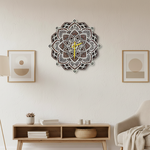 ساعت دیواری چوبی مدرن طرح ماندالا کد ۲۰۱۰